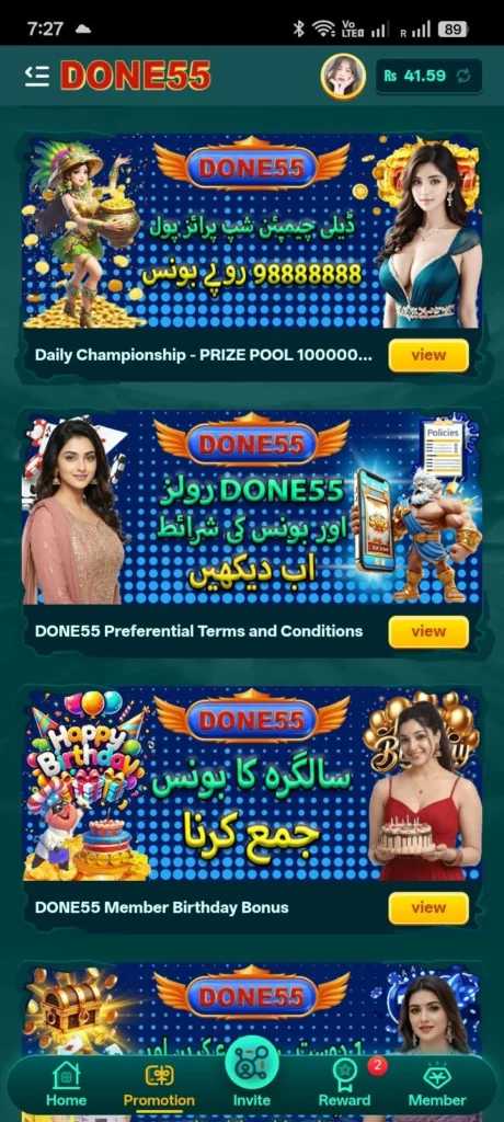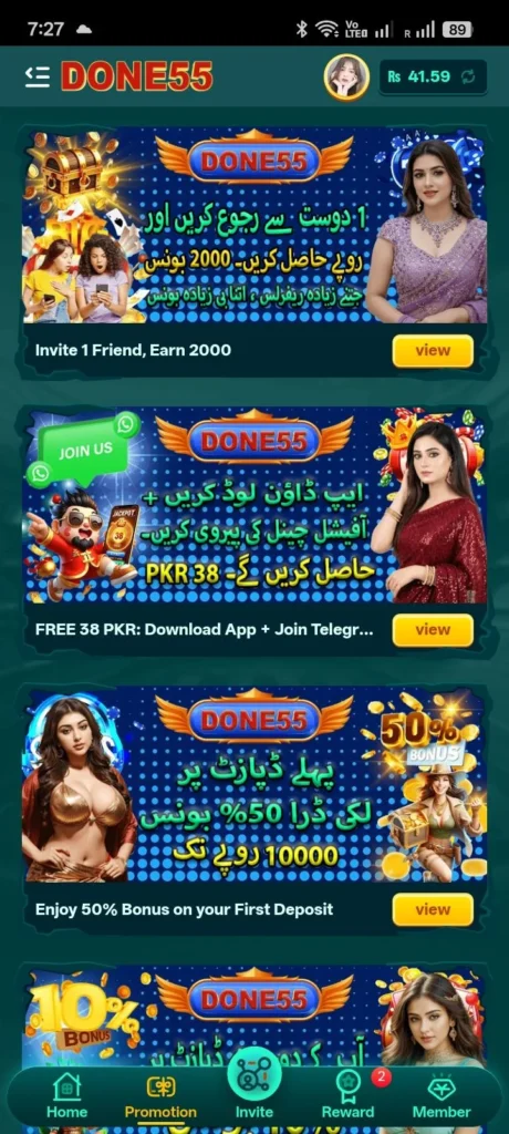 Done55 Game is not going anywhere anytime soon. It has carved out a solid place in Pakistan as a game that actually pays while keeping things genuinely fun. Whether you love the rush of spinning reels or prefer thinking through card moves, it has something that keeps you hooked. The easy setup, the mobile compatibility, and the real cash rewards all add up to make it one of the best options out there right now.